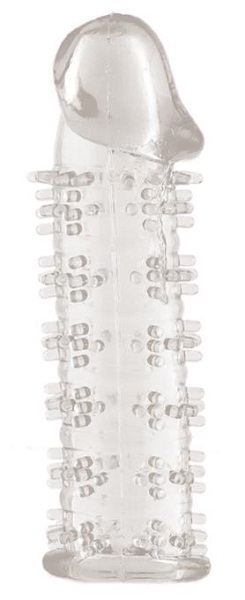 Прелесть этой насадки в том, что она, повторяя контуры вашего пениса, значительно увеличивает последний в объеме. Так, головка становится более большой и рельефной. Что же касается тельца члена, то его украшают скопления нежных шипов. Эти мелкие «ежики» обеспечат прекрасную стимуляцию вагины сексуальной партнерши.
