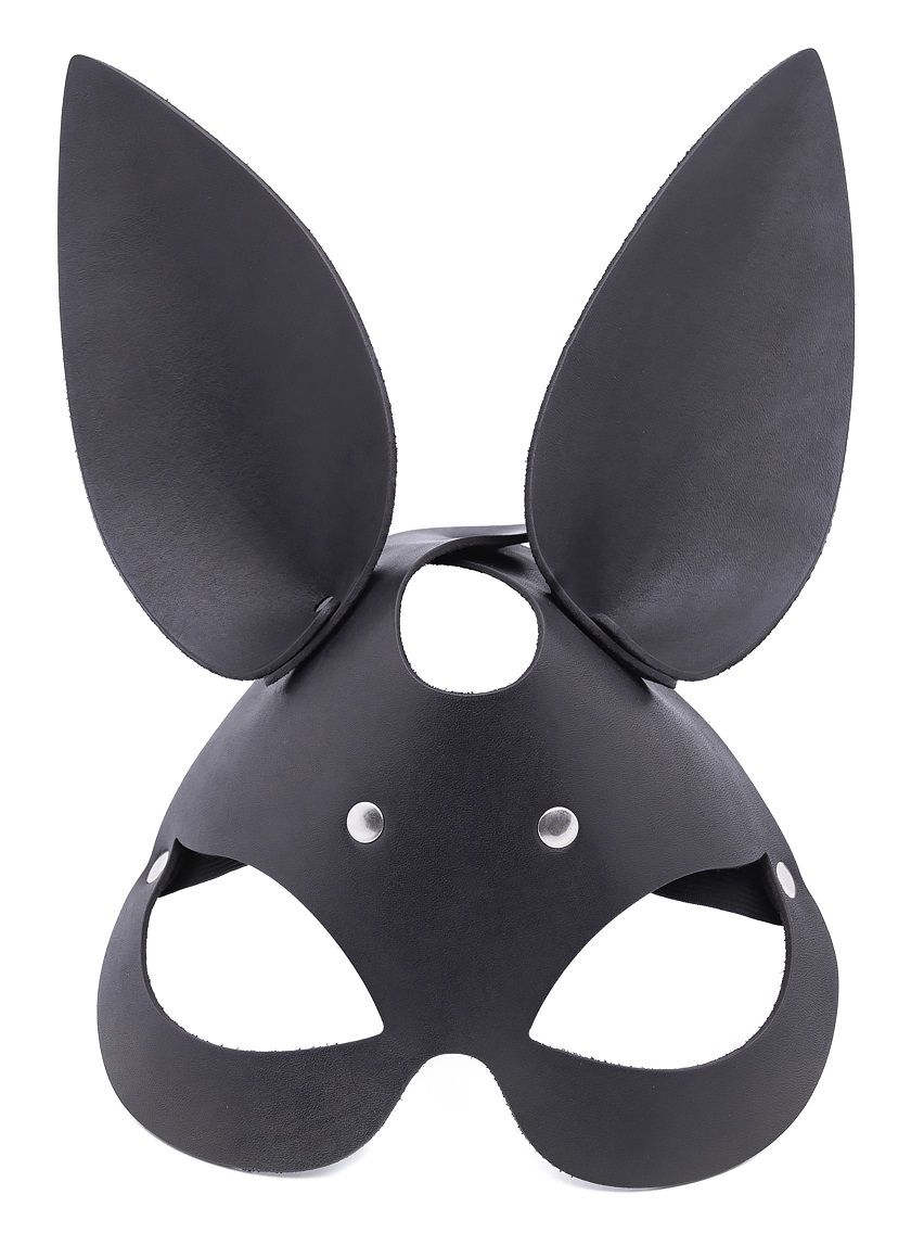 Гладкая маска Зайка с длинными ушками выполнена из натуральной кожи и снабжена широкой резинкой.